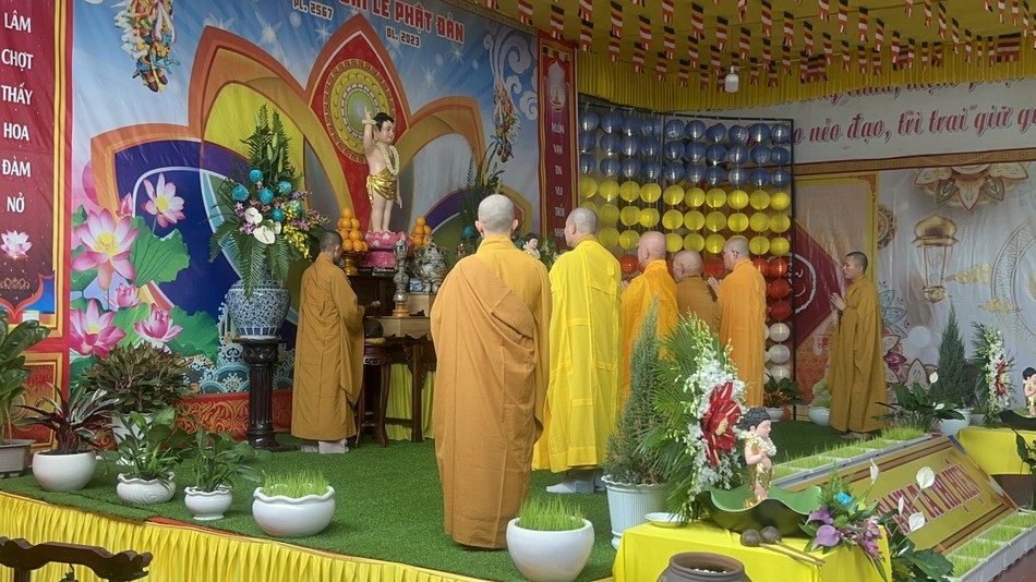 Tại buổi lễ, chư tôn đức đã cử hành lễ rước Phật đản sanh, dâng hương cúng dường, đồng tụng thời kinh Khánh đản và Tắm Phật.