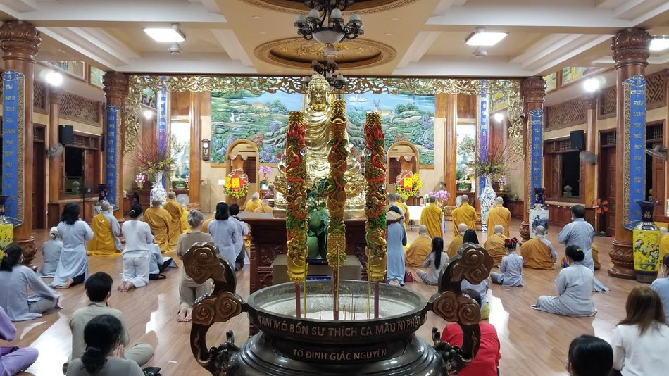 | Chư Tăng cử hành lễ giao thừa tại chánh điện |