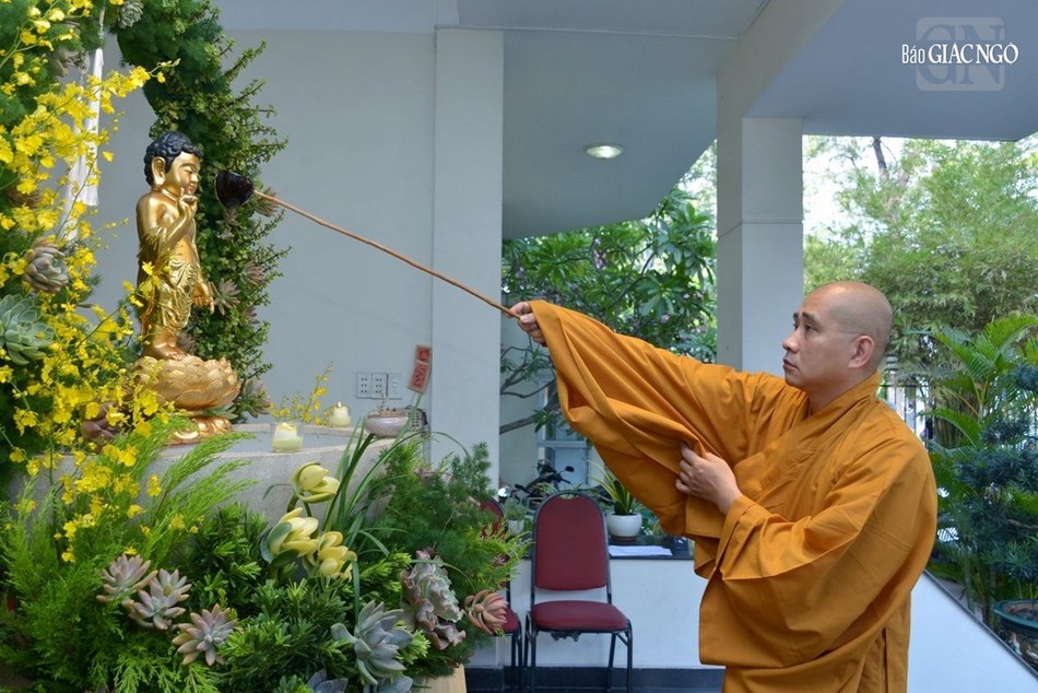 Theo thông lệ hàng năm, Ban Biên tập Báo Giác Ngộ cùng các biên tập viên, phóng viên, cán bộ, công nhân viên và cộng tác viên đang làm việc tại tòa soạn đều thiết trí lễ đài, cử hành lễ Tắm Phật truyền thống kính mừng ngày Khánh đản của Đức Thế Tôn.