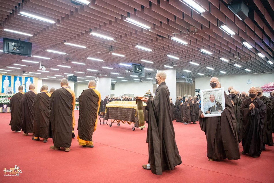 Nghi thức được trang nghiêm cử hành theo nghi lễ truyền thống của Tịnh tông Học hội. Kim quan được cung tống đến chùa Đại Tiên (Baihe, Đài Nam) trà-tỳ. Sau đó xá-lợi được an trí phụng thờ tại chùa Cực Lạc.