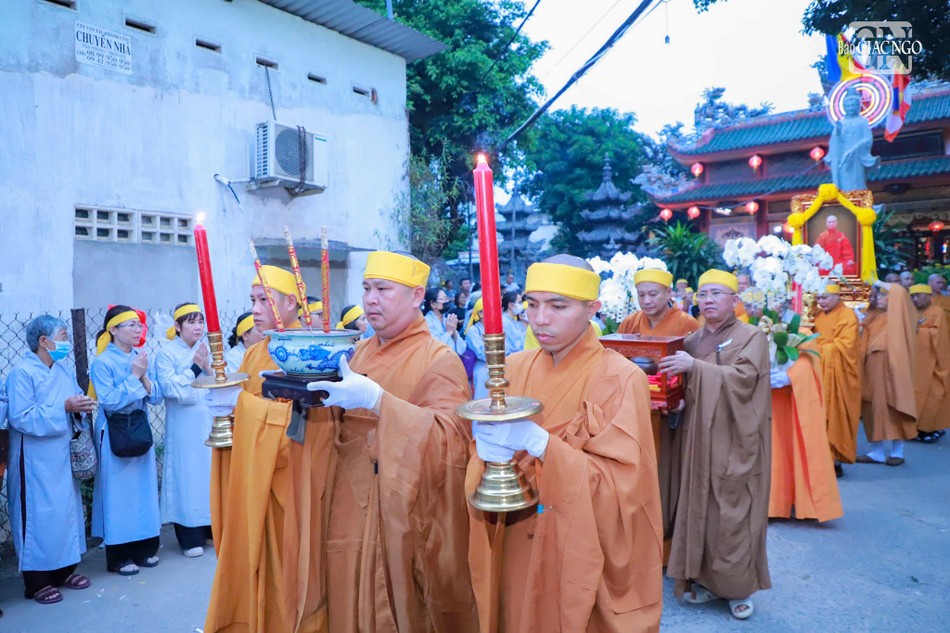 Hòa thượng Thích Lệ Trang, Trưởng ban Nghi lễ T.Ư, Trưởng ban Trị sự GHPGVN TP.HCM cử hành nghi lễ phất trần, cung tuyên pháp ngữ và thực hiện nghi thức di quan; môn đồ pháp quyến cung thỉnh bát hương, long vị, y bát, di ảnh, kim quan Hòa thượng rời Giác linh đường đến Đài hỏa táng Hoa viên Sala Garden (H.Long Thành, Đồng Nai) để trà-tỳ.