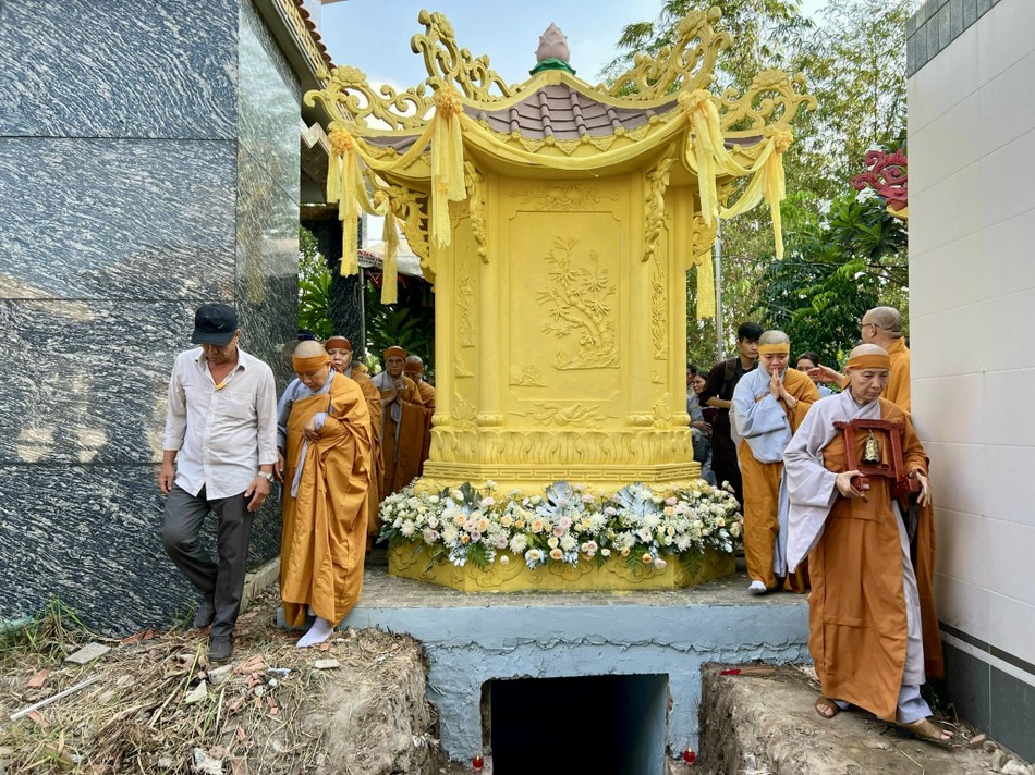 Trong niềm kính tiếc, chư tôn đức Tăng Ni, Phật tử đã kính viếng và tiễn biệt kim quan Ni trưởng đến nhập bảo tháp tại chùa Pháp Bảo thuộc H.Đức Hòa Thượng, tỉnh Long An.