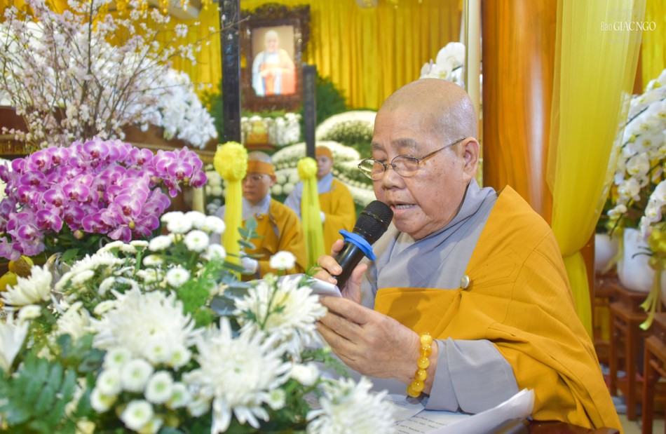 Sau đó, Thượng tọa Thích Minh Bảo, Trưởng ban Trị sự GHPGVN Q.4 đọc điếu văn tưởng niệm.