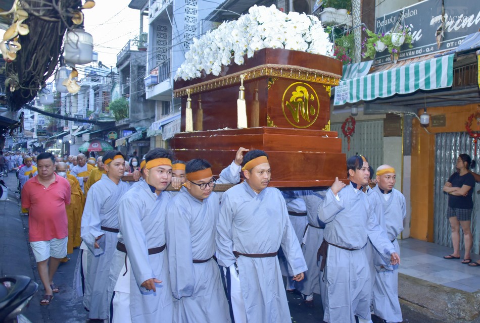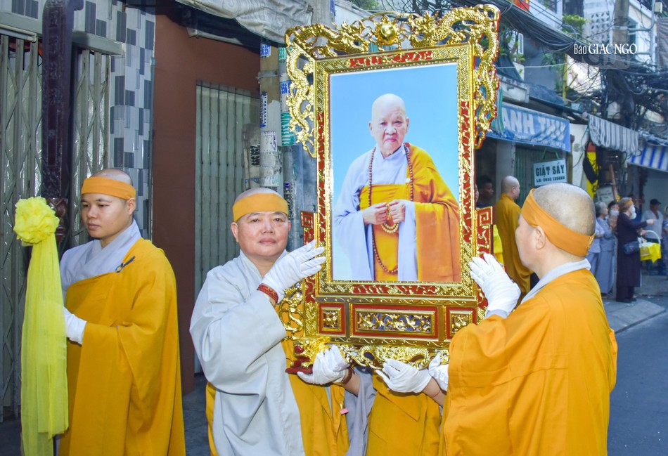 Sau đó, Ban Tổ chức lễ tang đã cung thỉnh Trưởng lão Hòa thượng Thích Như Tín phất trần. Ban Nghi lễ thực hiện các nghi thức di quan đến Đài hỏa táng Đa Phước (H.Bình Chánh, TP.HCM) để làm lễ trà-tỳ trong tiếng đồng thanh niệm Phật của Tăng Ni, Phật tử.