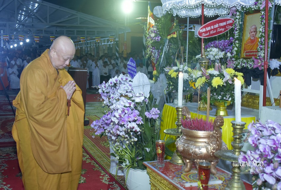 Sau đó, Ban Tổ chức cung thỉnh Hòa thượng Thích Lệ Trang, Ủy viên Thường trực Hội đồng Trị sự, Trưởng ban Nghi lễ T.Ư cử hành khóa lễ cầu nguyện theo nghi thức Bắc tông; cung thỉnh Hòa thượng Đào Như, Phó Chủ tịch Hội đông Trị sự cử hành khóa tụng niệm cầu nguyện theo nghi thức Nam tông.