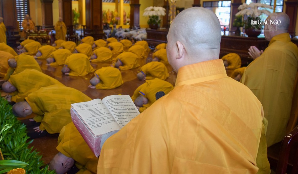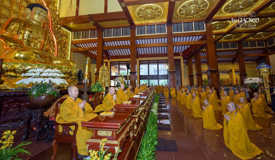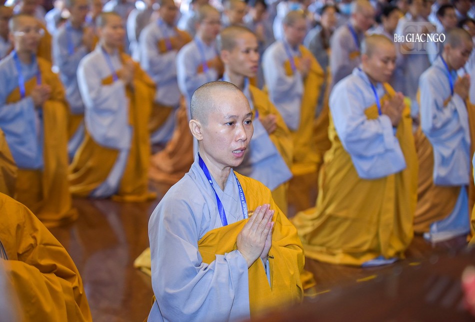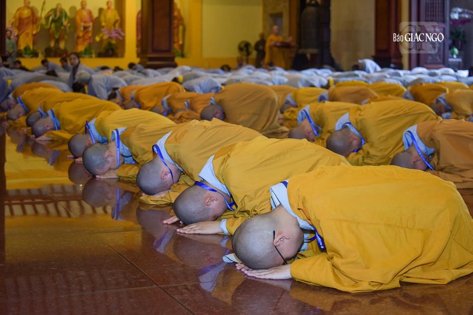 GNO - Sáng nay, 23-11-2023 (11-10-Quý Mão), các tân Tỳ-kheo, tân Tỳ-kheo-ni theo truyền thống Phật giáo Bắc tông vừa thọ giới pháp tại Đại giới đàn Bửu Huệ Phật lịch 2567 do Ban Trị sự GHPGVN TP.HCM tổ chức từ ngày 17 đến 23-11, vân tập chánh điện Việt Nam Quốc Tự cầu thọ giới Bồ-tát.