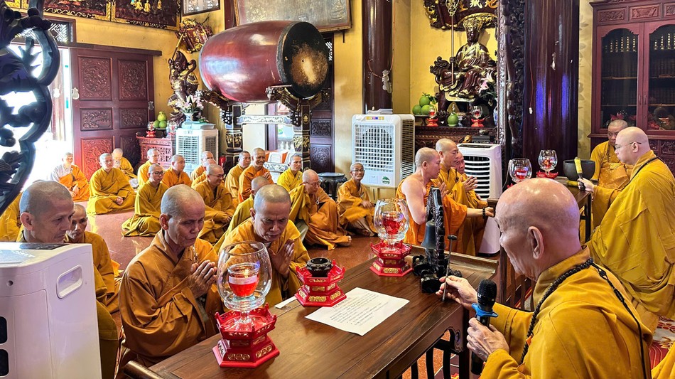 Chư Tăng chùa Đại Giác tác pháp Tự tứ dưới sự chứng minh của Trưởng lão Hòa thượng Thích Huệ Minh và Thượng tọa Thích Minh Nhựt |