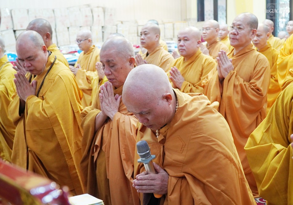 Tại buổi lễ, Thượng tọa Thích Giác Dũng thay mặt hành giả An cư kiết hạ và môn đồ đệ tử tác trình duyên sự và tác bạch pháp sự.