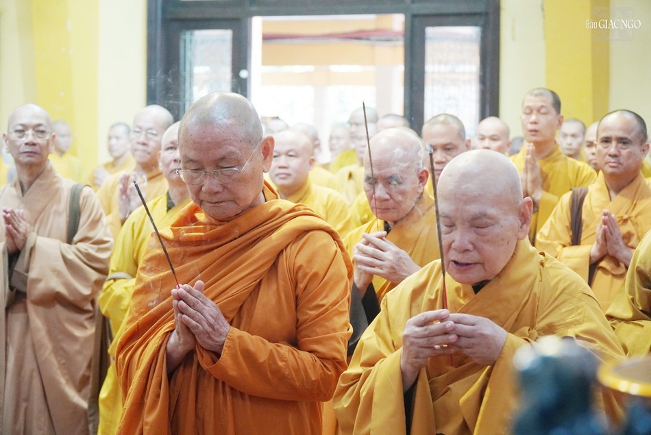 Tại buổi lễ, chư tôn giáo phẩm dâng hương tưởng niệm Hòa thượng Thích Tâm Châu (1921-2015), nguyên Chủ tịch Ủy ban Liên phái Bảo vệ Phật giáo.