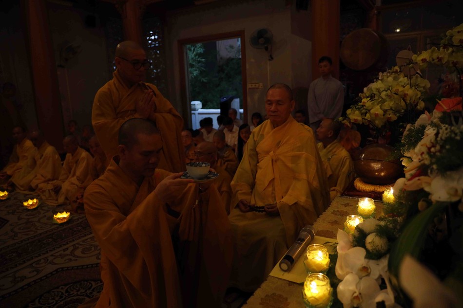 Tối cùng ngày, môn đồ pháp quyến và Phật tử đạo tràng chùa Bát Nhã đã trang nghiêm tổ chức lễ thắp nến tri ân, cầu nguyện.