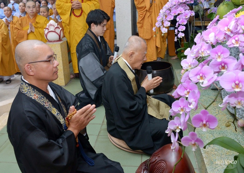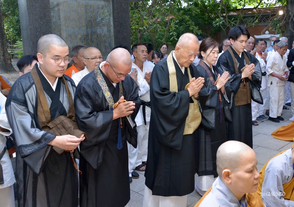 Hòa thượng Yamamoto Yuki, một trong những vị Tăng Nhật Bản có mối đạo tình thân thiết với Hòa thượng Thích Tâm Giác (1917-1973), gắn bó với nhiều Tăng Ni Việt Nam từ sau pháp nạn Phật giáo 1963 tại miền Nam nước ta, đã sang dự và cử hành thời kinh cầu nguyện tại tu viện Vĩnh Nghiêm |