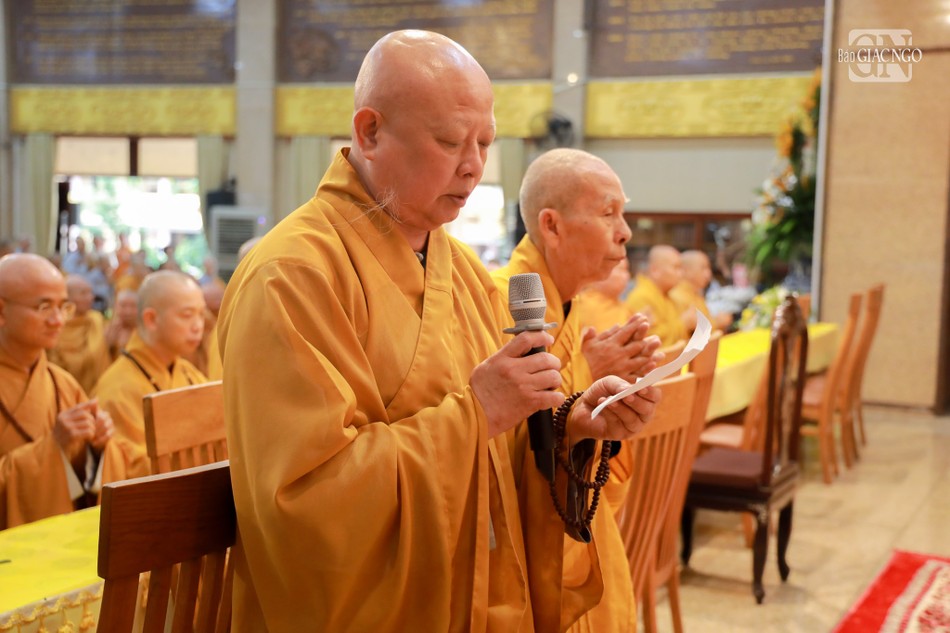 Trước di ảnh Hòa thượng Thích Giác Nhiên tại giảng đường, chư tôn giáo phẩm đã dâng hương tưởng niệm, tri ân công đức cố Hòa thượng. Hòa thượng Thích Lệ Trang, Trưởng ban Trị sự GHPGVN TP.HCM xướng tụng Tứ hoằng thệ nguyện cùng đại chúng nhất tâm cầu nguyện Giác linh Hòa thượng cao đăng Phật quốc.