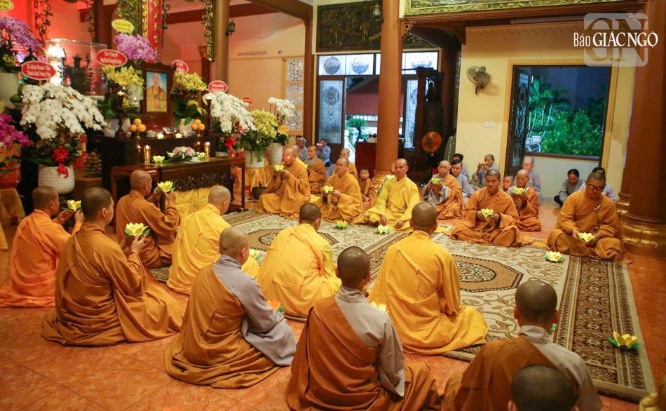 Tối cùng ngày, môn đồ pháp quyến và Phật tử đạo tràng chùa Bát Nhã đã trang nghiêm tụng kinh Di giáo, thắp nến tri ân, cùng ôn lại hành trạng Hòa thượng tôn sư.