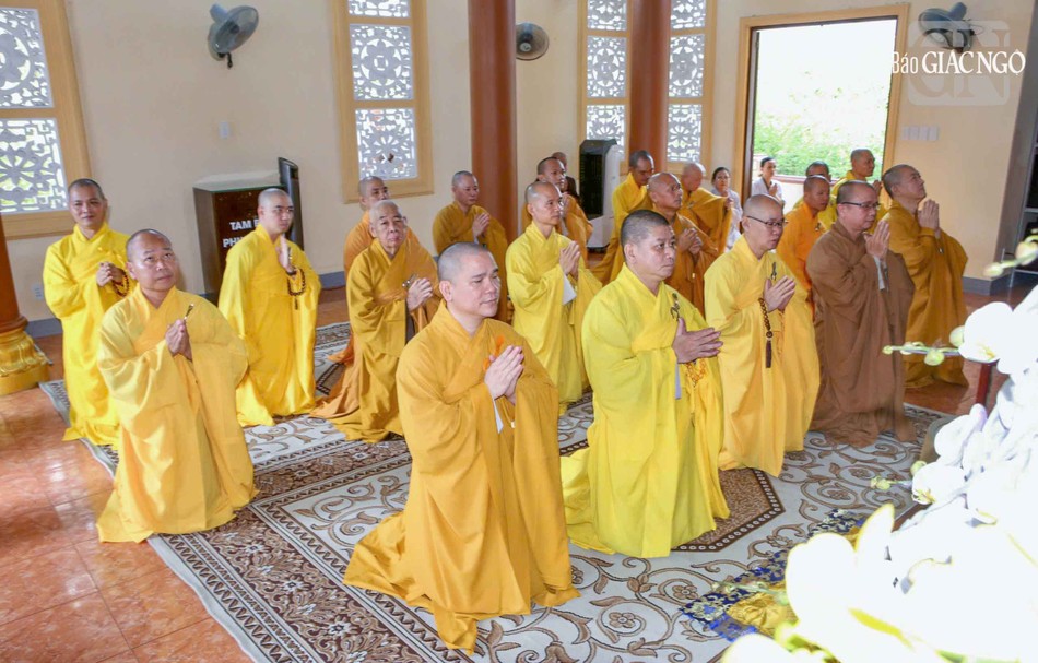 Tại buổi lễ, Hòa thượng Thích Nguyên Giác, trụ trì tu viện Quảng Hương Già Lam (P.Hạnh Thông) đương vi sám chủ đã cử hành lễ cúng ngọ và cung tiến Giác linh theo nghi lễ thiền môn cố đô Huế.