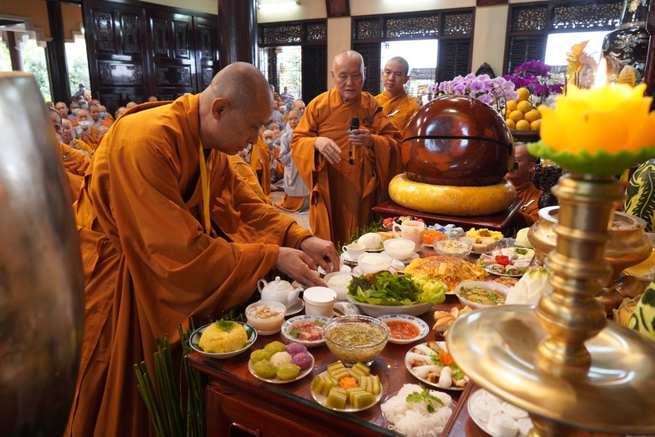 Tại buổi lễ, hàng pháp tử, pháp tôn đã thành kính thắp hương tưởng niệm, dâng trà, dâng phạn thực cúng Tổ sư theo nghi thức thiền môn.