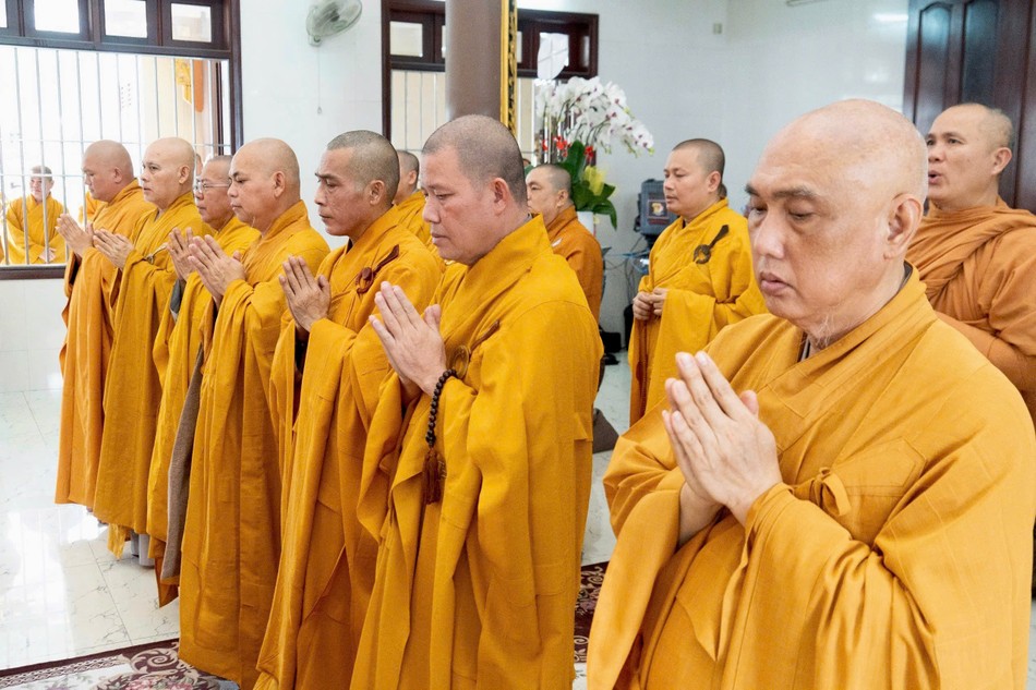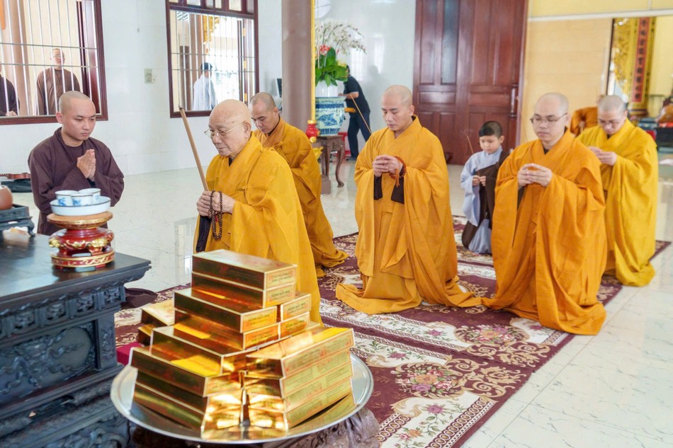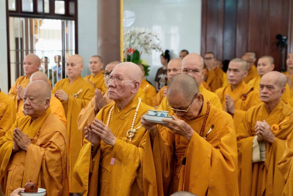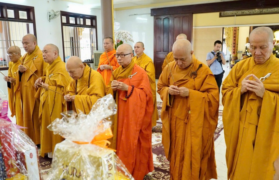 Trước đó, chiều ngày 5-10, chư tôn giáo phẩm Ban Thường trực Hội đồng Trị sự, Văn phòng II T.Ư và Ban Trị sự GHPGVN TP.HCM đã đến chùa Thiền Tôn 2 dâng hương tưởng niệm cố Trưởng lão Hòa thượng Thích Tắc An.