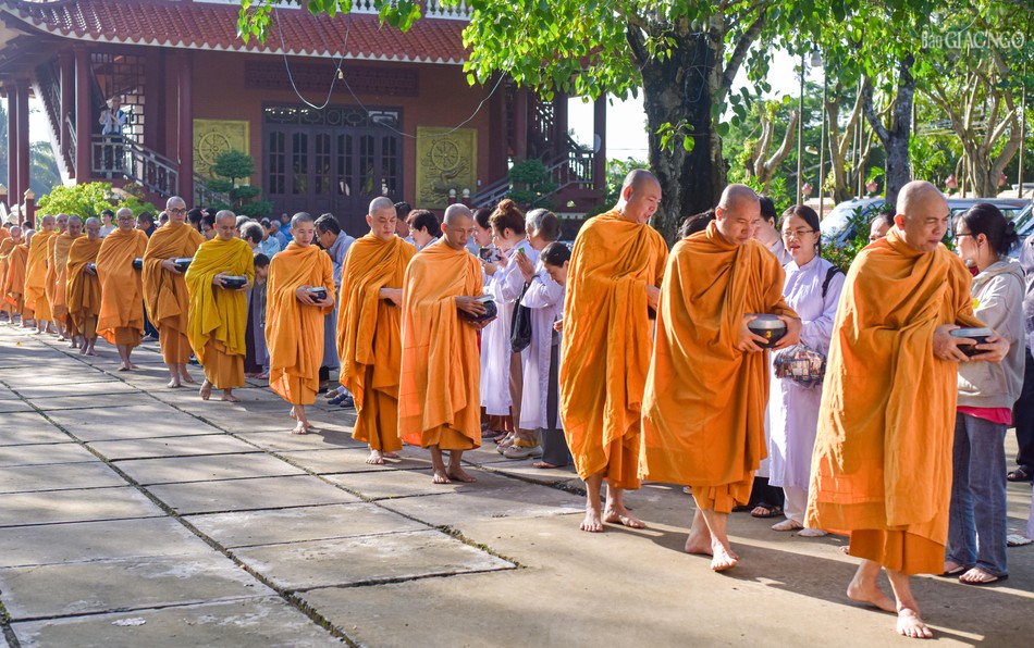 Cũng trong sáng nay, Tăng Ni Giáo đoàn I cũng thực hiện nghi thức trì bình khất thực trong khuôn viên tổ đình Minh Đăng Quang để tạo duyên cho Phật tử cúng dường phẩm vật, gieo trồng phước lành.