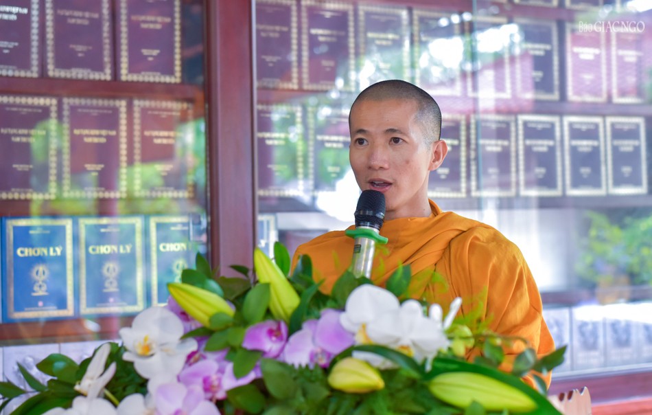 Sau khi đảnh lễ Tam bảo, Trưởng lão Hòa thượng Thích Giác Giới thay lời chư tôn đức nhắc lại cuộc đời và đạo nghiệp của nhị Tổ Giác Chánh.