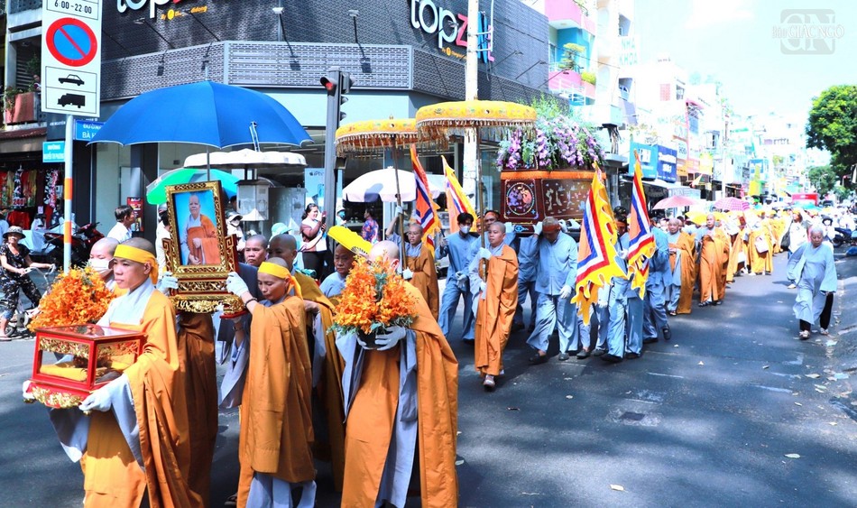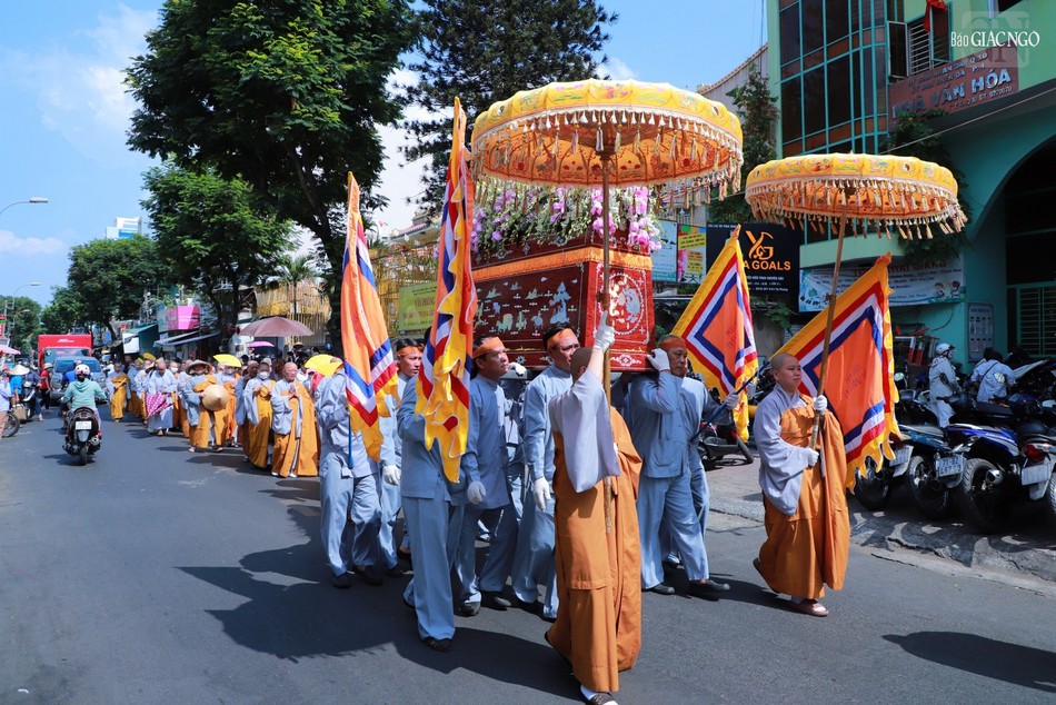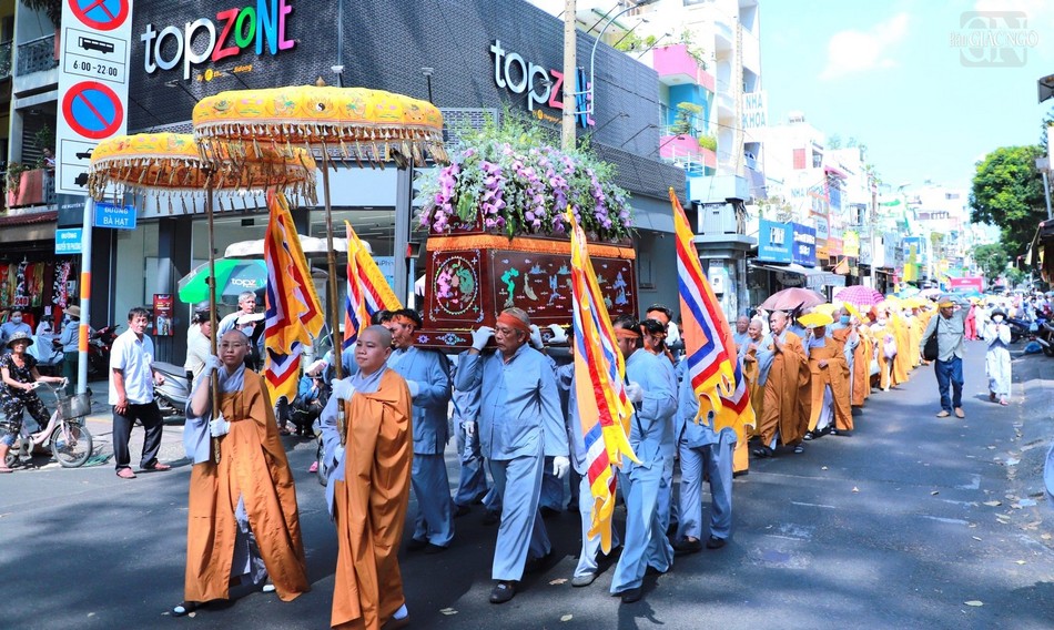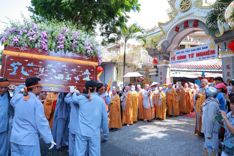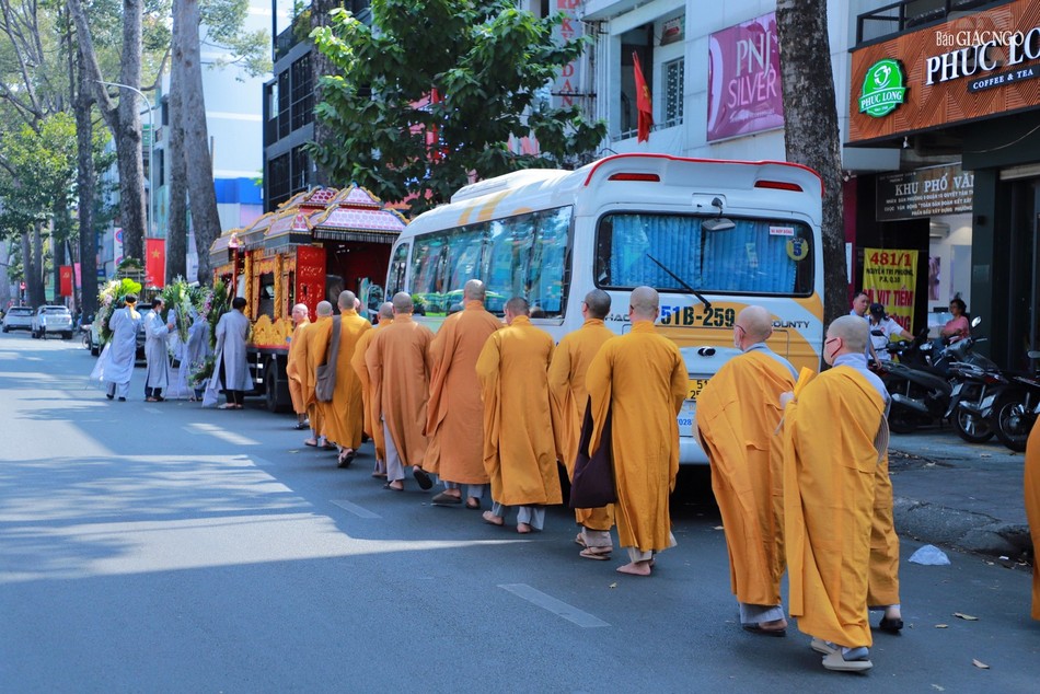 Ban Nghi lễ, môn đồ pháp quyến đã thực hiện các nghi thức thỉnh kim quan Ni trưởng Thích nữ Như Ngọc từ từ rời tổ đình Từ Nghiêm đến Đài hỏa táng chùa Hội Long (Long An) cử hành lễ trà-tỳ.