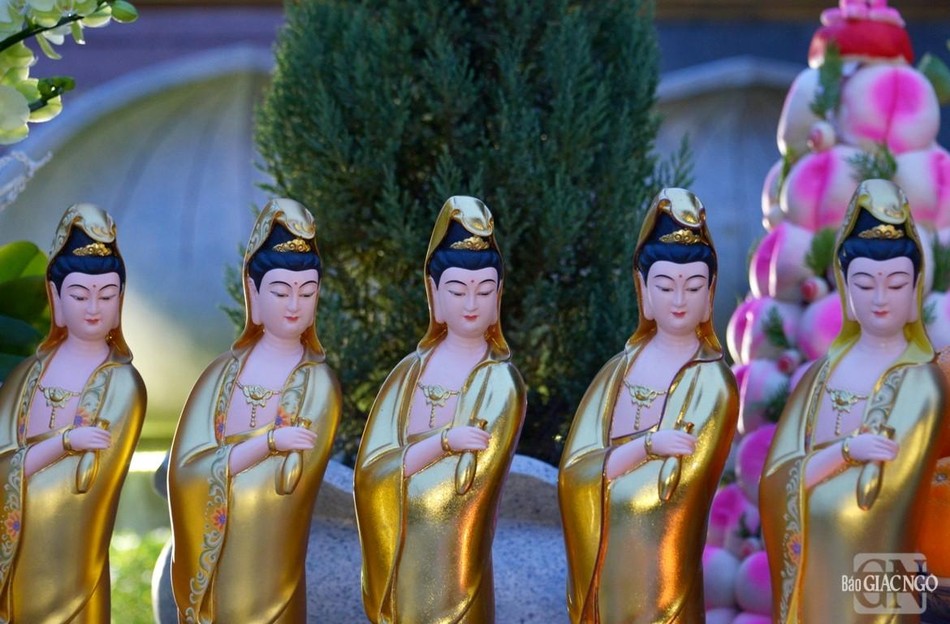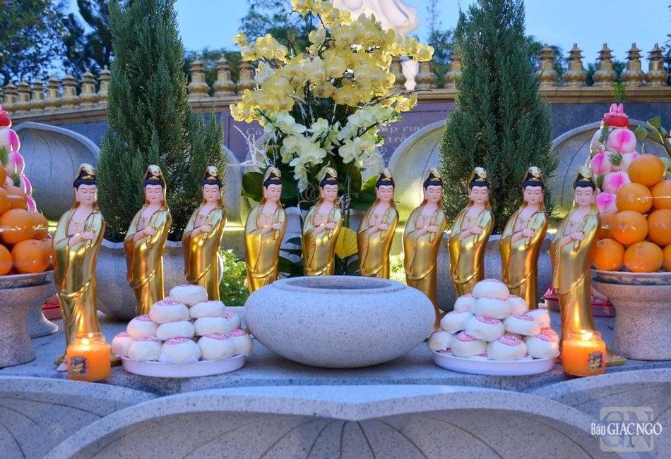 Trưởng lão Hoà thượng Thích Trí Quảng, Viện chủ chùa Huê Nghiêm quang lâm niêm hương. Chư Tăng bổn tự và chư tôn đức cử hành khóa lễ trước thánh tượng Đức Bồ-tát lộ thiên trong khuôn viên chùa.