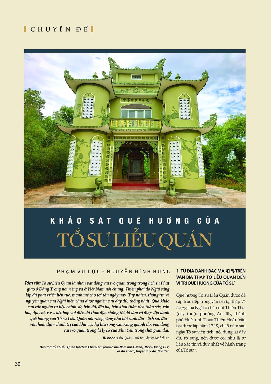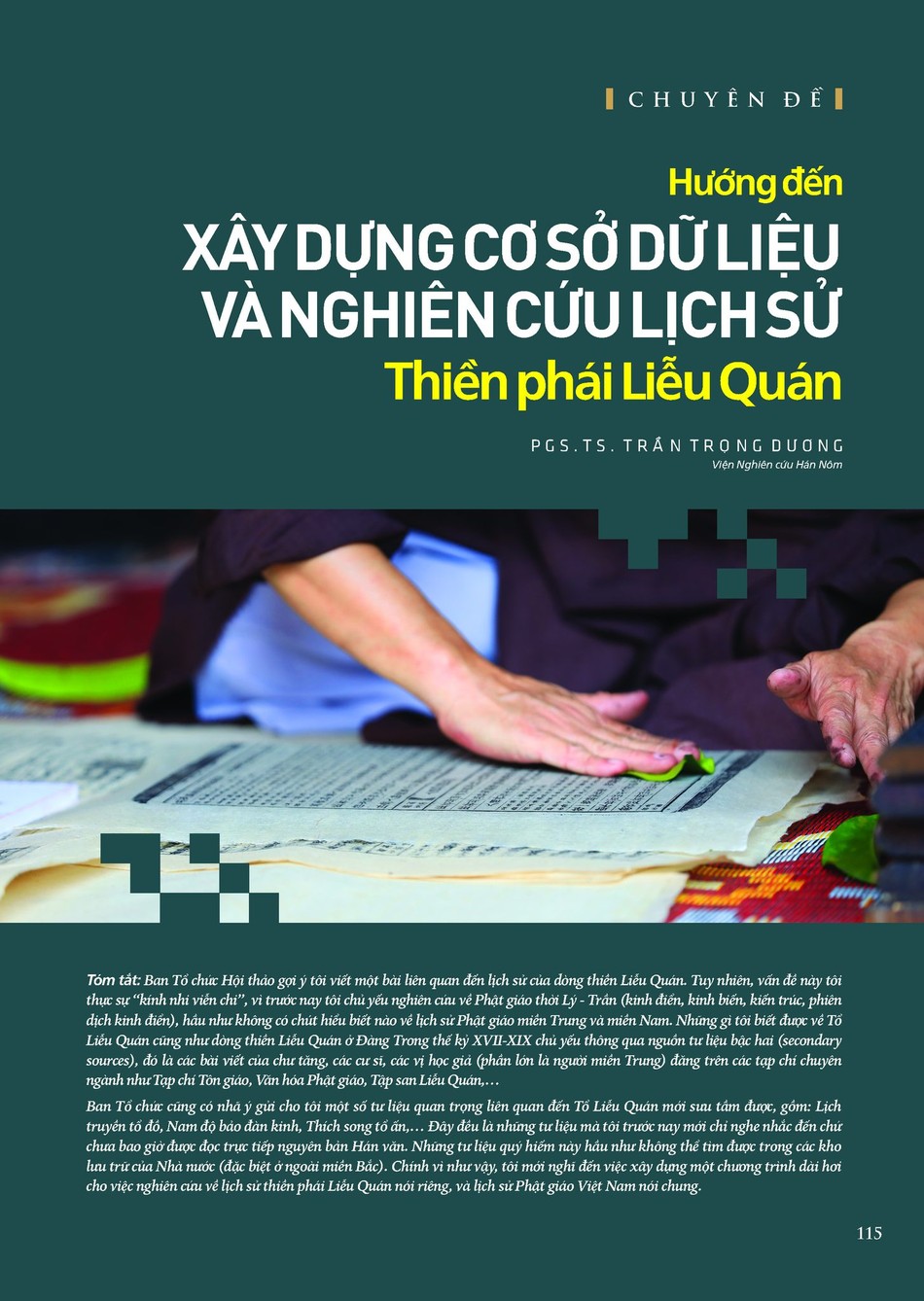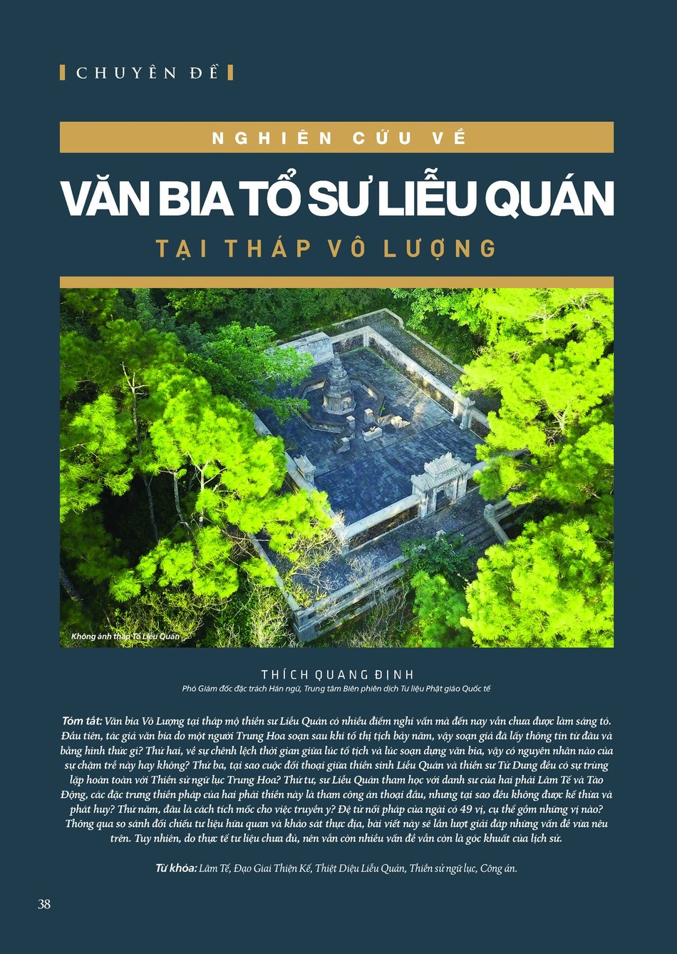 Cũng trong ấn phẩm số 31 này dành chuyển tải nội dung chuyên đề: “Liễu Quán phong đăng: Dấu ấn của một dòng thiền qua các nguồn sử liệu” - giới thiệu đến quý độc giả những thông tin mới, có giá trị liên quan đến Tổ sư Liễu Quán và lịch đại Tổ sư truyền thừa qua các văn bản và điển tịch cổ vừa được phát hiện trong những năm gần đây.