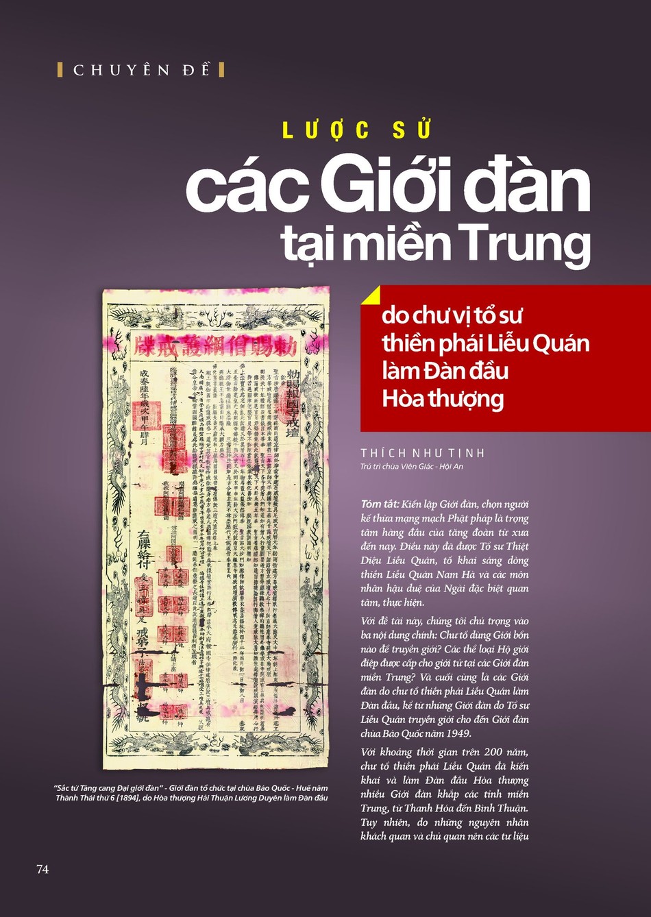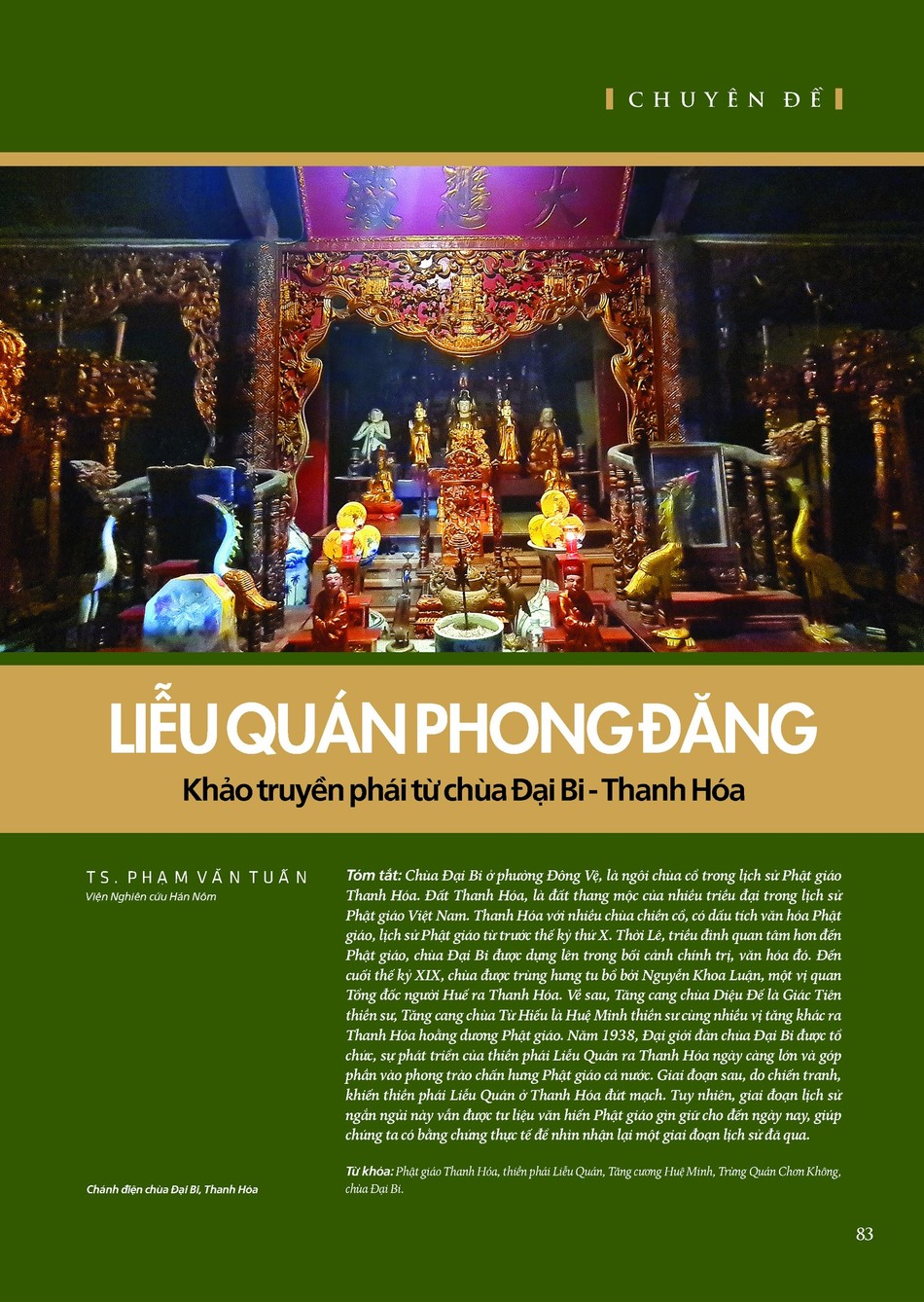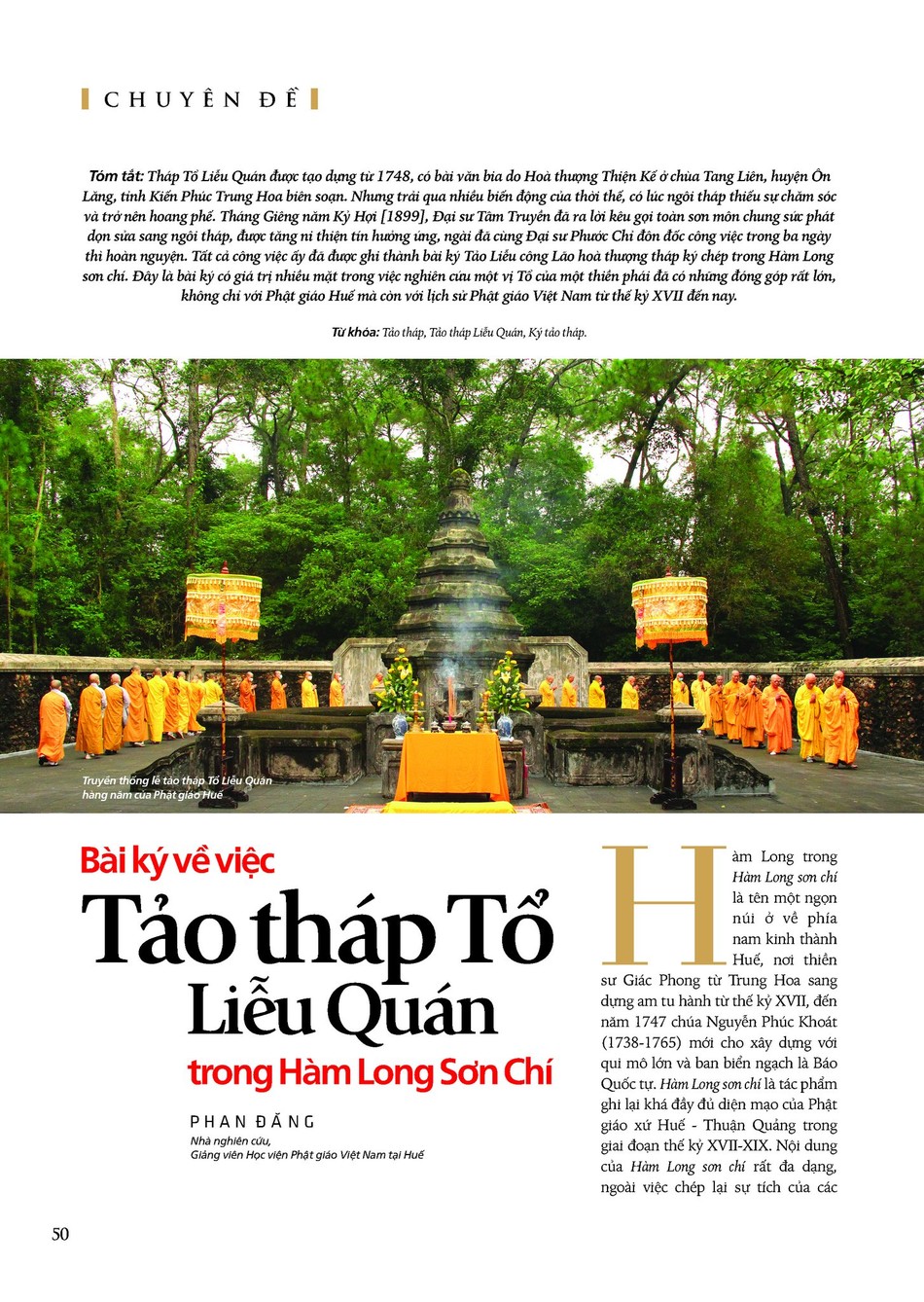 Cũng trong ấn phẩm số 31 này dành chuyển tải nội dung chuyên đề: “Liễu Quán phong đăng: Dấu ấn của một dòng thiền qua các nguồn sử liệu” - giới thiệu đến quý độc giả những thông tin mới, có giá trị liên quan đến Tổ sư Liễu Quán và lịch đại Tổ sư truyền thừa qua các văn bản và điển tịch cổ vừa được phát hiện trong những năm gần đây.