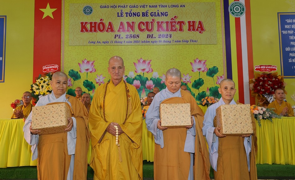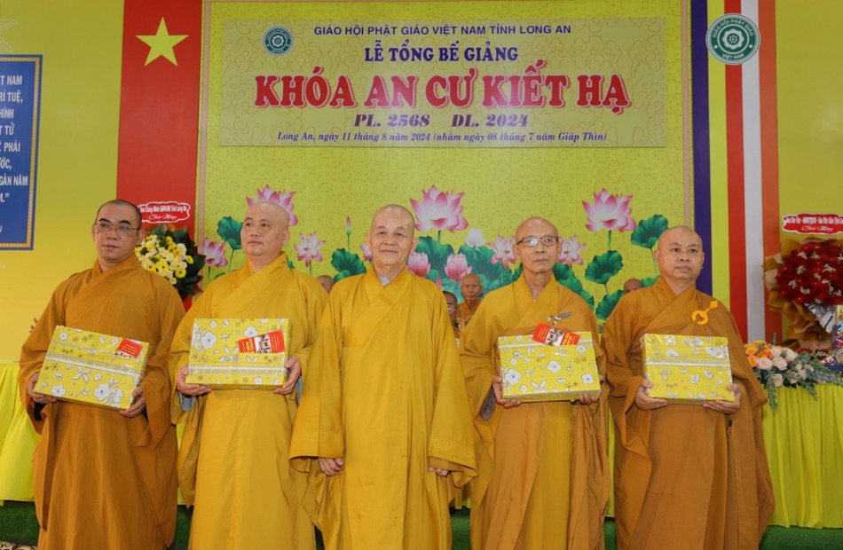Hòa thượng Thích Minh Thiện, Trưởng ban Chỉ đạo khóa An cư kiết hạ tỉnh Long An trân trọng ghi nhận công đức của chư tôn đức Ban Chức sự các trường hạ đã thực hiện tốt chỉ đạo của Phật giáo tỉnh, khéo dụng tâm, khéo điều phối, tạo phương tiện cho 906 hành giả an cư tu học tốt, trang nghiêm giới thân, thành tựu đạo nghiệp định huệ viên mãn; cảm ơn lãnh đạo chính quyền tỉnh, địa phương luôn tận tình giúp đỡ các hoạt động của 13 hạ trường diễn ra tốt đẹp.