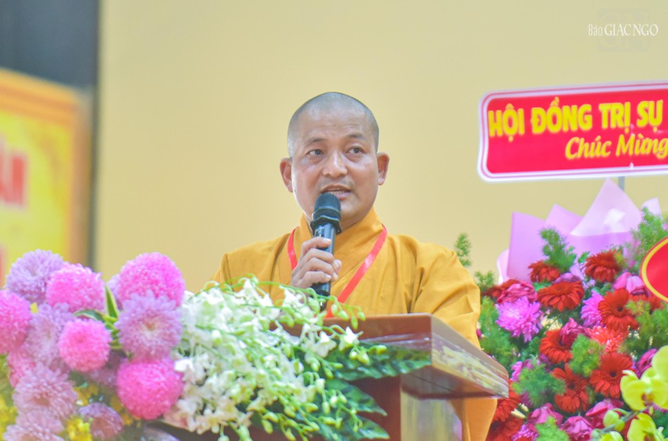 | Đại đức Thích An Nhựt báo cáo tổng kết Đại giới đàn |
