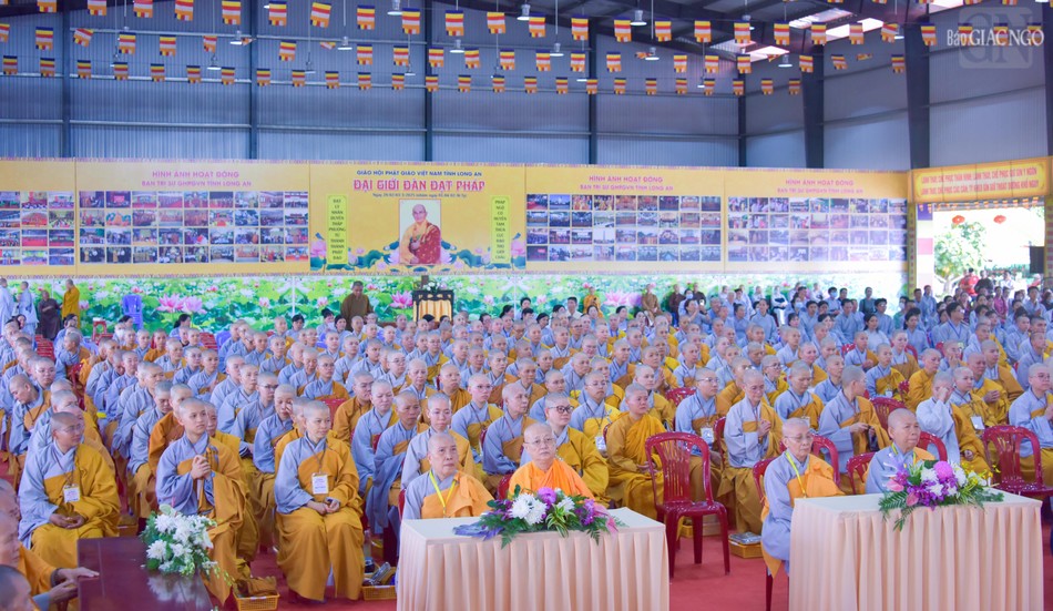 Thay mặt Ban Kiến đàn, Đại đức Thích An Nhựt báo cáo tổng kết Đại giới đàn cho biết nhằm đáp ứng nguyện vọng thọ giới của các giới tử Tăng, Ni trong và ngoài tỉnh Long An, Ban Thường trực Ban Trị sự GHPGVN tỉnh Long An tổ chức Đại giới đàn Đạt Pháp, từ ngày 28-2 đến 3-3-2025.