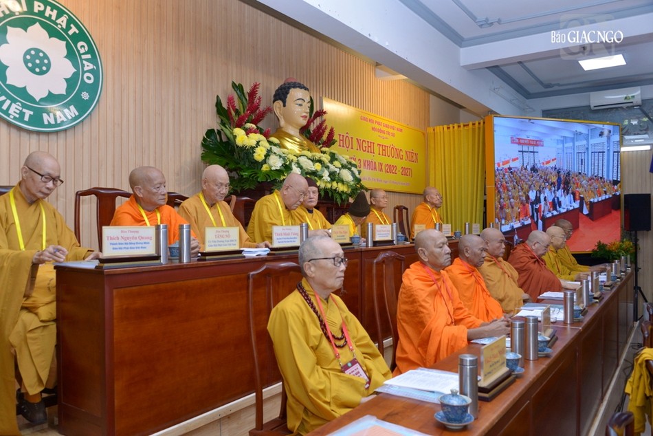 Theo đó, năm 2023 là năm đầu tiên của nhiệm kỳ 2022-2027, GHPGVN đã vận dụng trí tuệ tập thể, tinh thần hòa hợp, đoàn kết, phát huy tính sáng tạo, giữ vững niềm tin Đạo pháp của các thành viên Tăng Ni, Phật tử cả nước. Qua đó, năm 2023, GHPGVN đã từng bước triển khai Nghị quyết Đại hội IX, triển khai Hiến chương GHPGVN sửa đổi lần VII, cơ cấu, bổ sung nhân sự 13 Ban, Viện T.Ư, ban hành các Quy chế: Hội đồng Trị sự, Ban Trị sự cấp tỉnh, cấp huyện; các Ban, Viện T.Ư, Quy chế Ban Quản trị cơ sở tự viện; công tác xây dựng và củng cố cơ sở Giáo hội tại các địa phương; tổ chức hội nghị sinh hoạt hành chánh Giáo hội; 2 Văn phòng Giáo hội và các Ban, Viện T.Ư được củng cố, tăng cường nhân sự hợp lý và hoạt động đồng bộ.