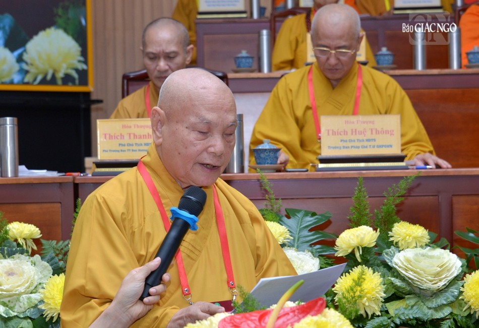 “Trên tinh thần trách nhiệm, trí tuệ tập thể, Ban Thường trực Hội đồng Trị sự rất mong chư tôn đức và quý vị đại biểu tập trung góp ý, đánh giá tổng kết hoạt động Phật sự của GHPGVN cũng như các Ban, Viện T.Ư, Ban Trị sự GHPGVN tỉnh thành nhằm phân tích, đánh giá, chỉ ra những nhân tố tích cực đưa đến thành tựu các Phật sự; tìm ra những nguyên nhân khách quan, chủ quan hạn chế trong các hoạt động Phật sự cho năm 2024, là năm quan trọng phấn đấu hoàn thành các mục tiêu, nhiệm vụ Đại hội IX GHPGVN đề ra, để Phật giáo Việt Nam phát triển bền vững và tỏa sáng trong tương lai cũng như hội nhập trên trường quốc tế, tiến đến Đại lễ Vesak Liên hiệp Quốc năm 2025 do Giáo hội đăng cai tổ chức tại TP.HCM.