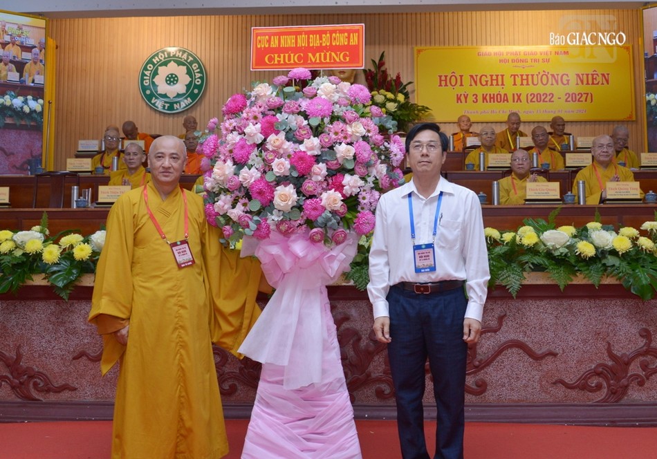 Thay mặt Ban Thư ký Hội đồng Trị sự, Thượng tọa Thích Thanh Tuấn, Phó Tổng Thư ký Hội đồng Trị sự, Chánh Văn phòng I TƯGH báo cáo tóm tắt hoạt động Phật sự năm 2023 của GHPGVN được Hội nghị Ban Thường trực Hội đồng Trị sự thông qua vào ngày 13-1-2024, cùng thành tựu nổi bật của 13 Ban, Viện T.Ư.