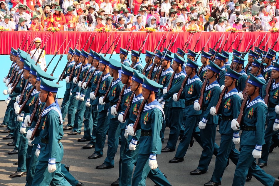 Tiếp đó, buổi diễu binh, diễu hành được chính thức bắt đầu vào lúc 8 giờ 7 phút sau khẩu lệnh của Thượng tướng Nguyễn Văn Nghĩa, Phó Tổng Tham mưu trưởng Quân đội Nhân dân Việt Nam. Sau khi diễu qua khu vực lễ đài chính, đoàn diễu binh, diễu hành chia thành 4 hướng đi theo các ngả đường trong trung tâm thành phố, giữa vòng tay chào đón của nhân dân.