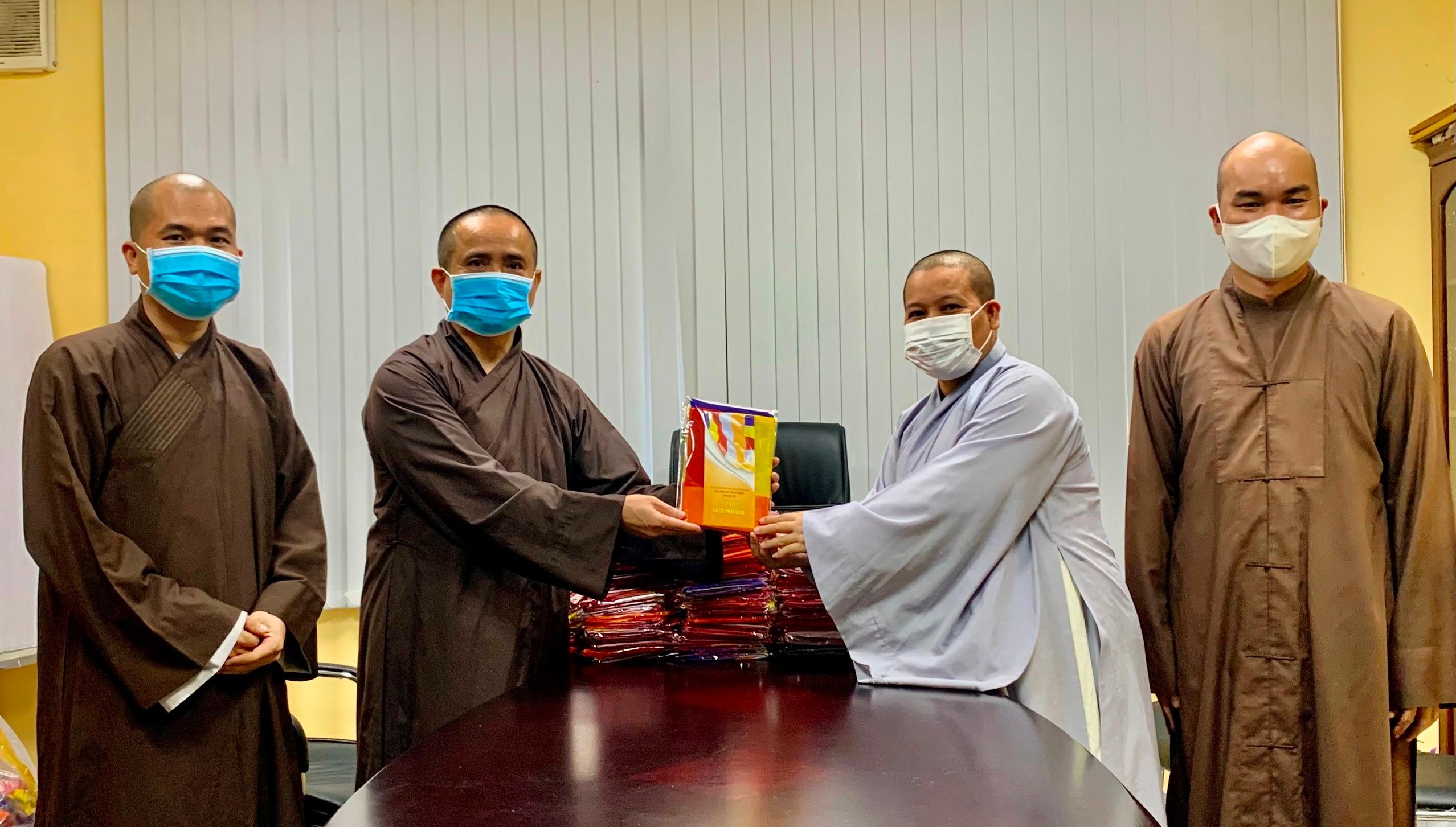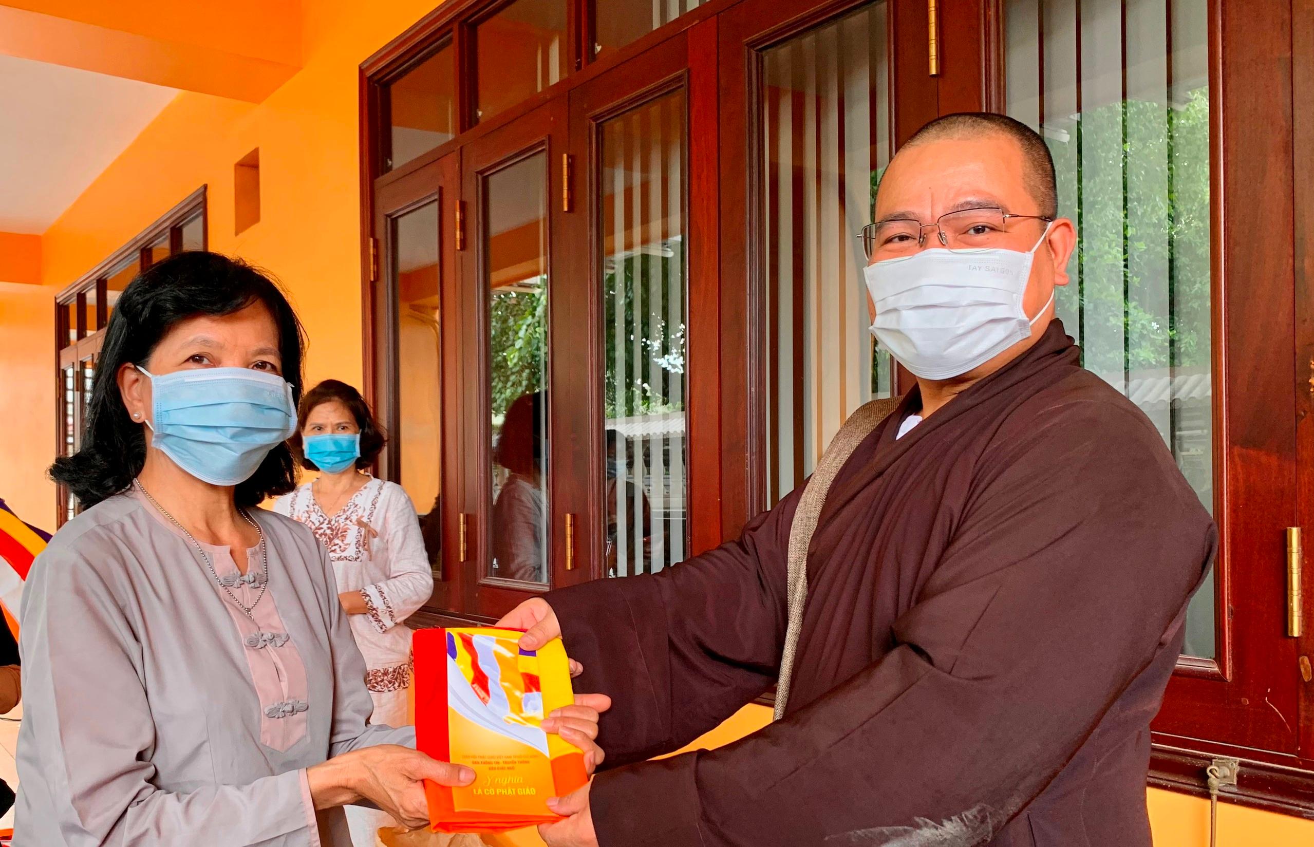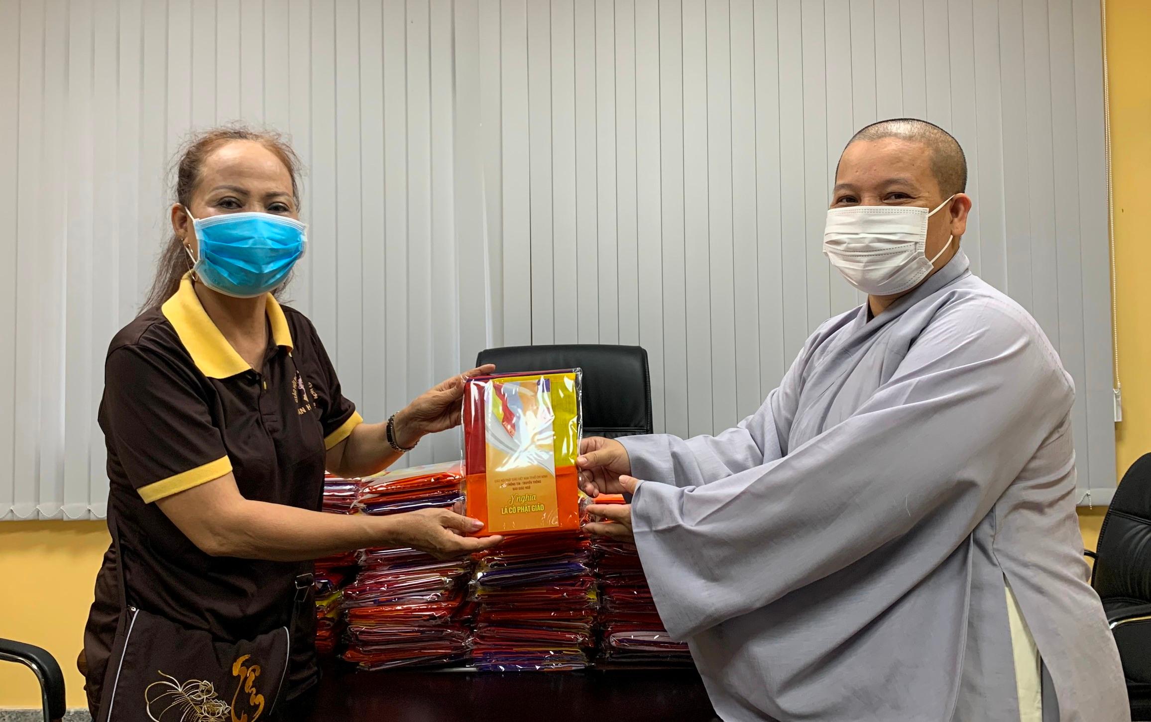 Trao 1.000 lá cờ đến đại diện chùa Vạn Đức - điểm tặng cờ tại TP.Thủ Đức - Ảnh: H.D |