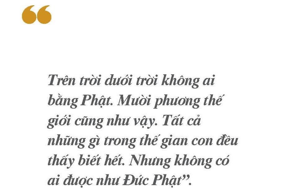 Có hay không chuyện vừa Đản sinh đã có thể đi bảy bước và tuyên bố “Ta là đấng tối thượng trong tam giới”, điều đó không quan trọng, bởi vì Như Lai có thật sự tối thượng, là Thầy của trời người hay không, mỗi người tự cảm nhận lấy. Bởi ngay cả bậc đại trí tuệ như Tôn giả Xá-lợi-phất cũng tán thán Đức Phật rằng: “Trên trời dưới trời không ai bằng Phật. Mười phương thế giới cũng như vậy. Tất cả những gì trong thế gian con đều thấy biết hết. Nhưng không có ai được như Đức Phật”6.