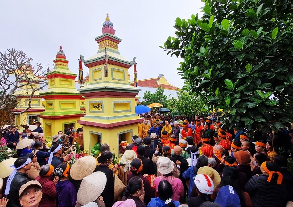 Sau lễ truy niệm, Ban Tổ chức đã cử hành nghi thức cung tống kim quan cố Hòa thượng Thích Thanh Dương nhập bảo tháp trong khuôn viên chùa Phúc Lâm.