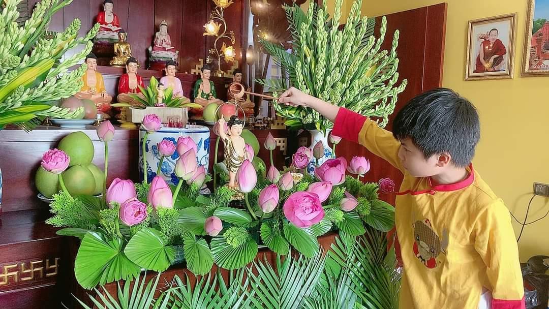 Theo đó, nhiều gia đình của Phật tử tại ở các quận huyện TP.HCM, Hà Nội cũng thực hiện thiết trí lễ đài, bàn thờ Phật, vườn Lâm-tỳ-ni tại tư gia trang nghiêm dâng lên cúng dường nhân mùa Phật đản Phật lịch 2565.