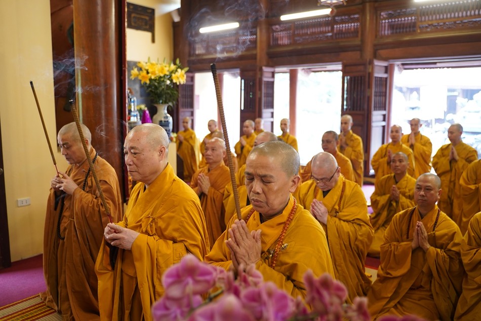 Từ 4 giờ sáng, các giới tử đã vân tập về nơi lễ đường trang nghiêm để trì kinh, sám hối, niệm Phật dưới sự chủ lễ của Hòa thượng Thích Bảo Nghiêm cùng chư tôn đức Tăng.