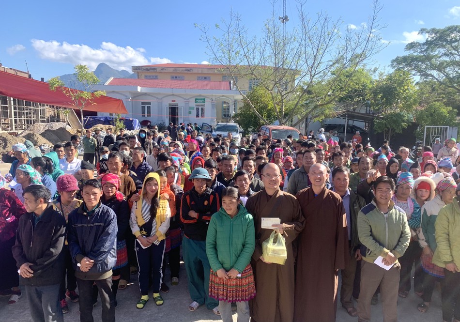Chiều cùng ngày, đoàn do Thượng tọa Thích Trung Sơn, Phó ban Kinh tế - Tài chính Trung ương GHPGVN, Phó ban Từ thiện - Xã hội Phật giáo TP.HCM hướng dẫn tiếp tục trao tặng 500 phần quà đến người dân tại huyện Nậm Nhùn - tỉnh Lai Châu.