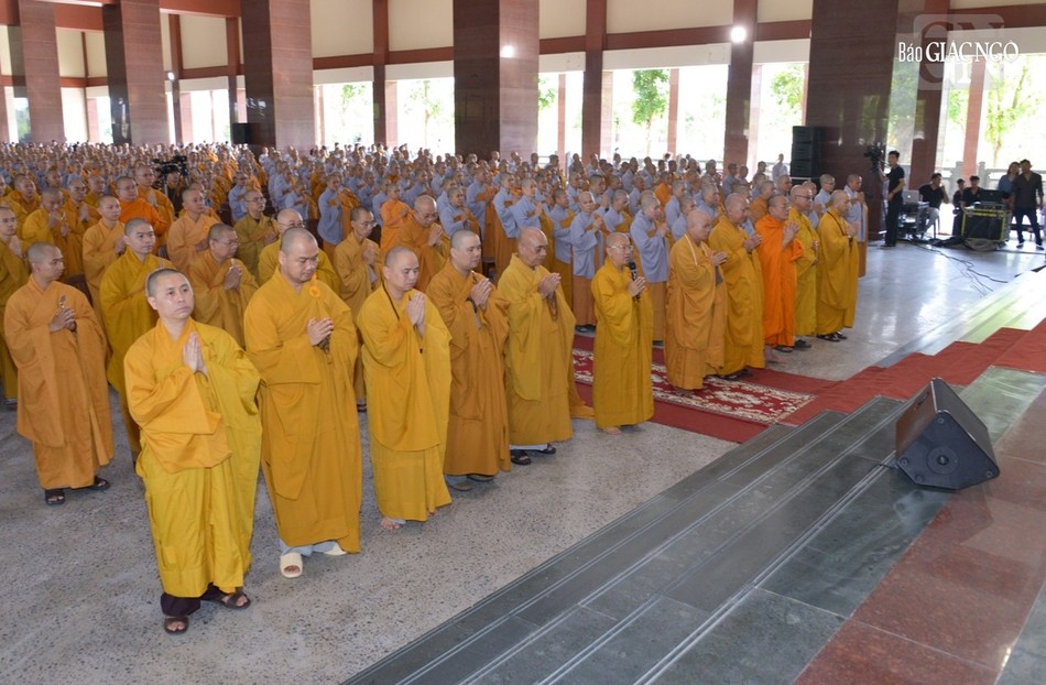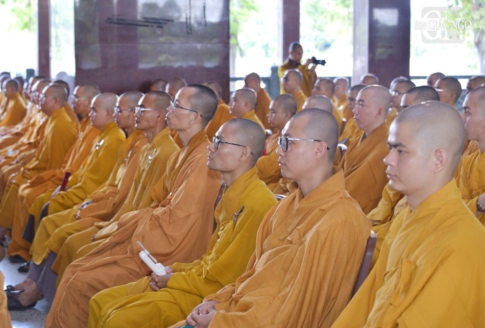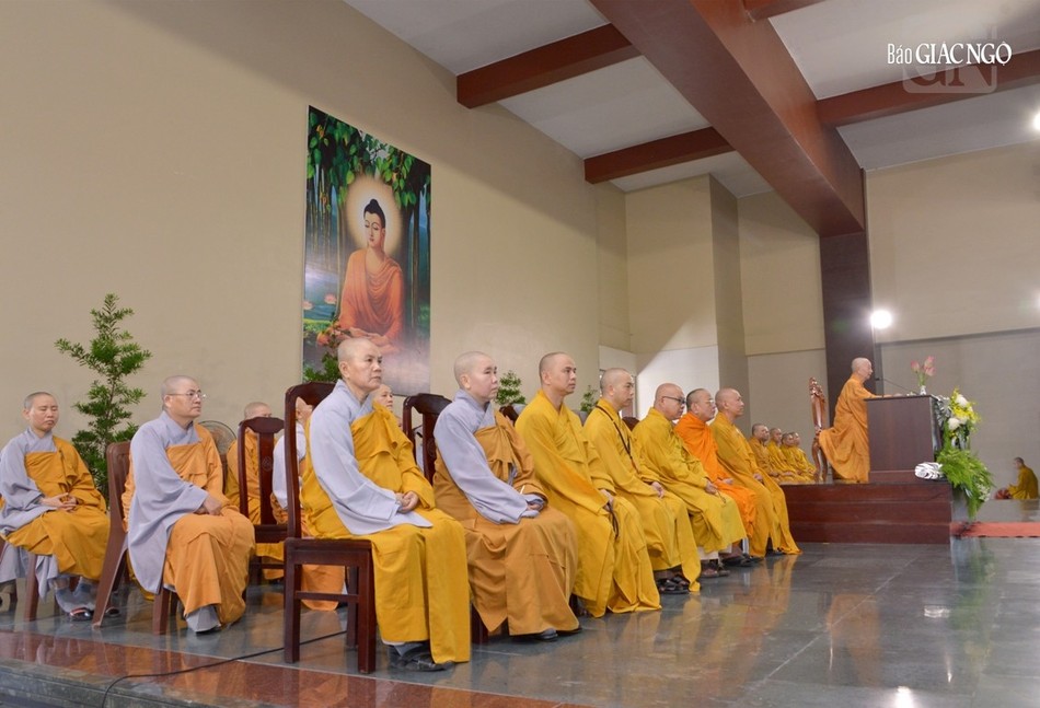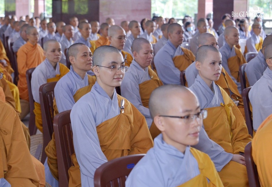 Chư Tăng Ni lắng nghe khai thị của Trưởng lão Hòa thượng Viện trưởng |