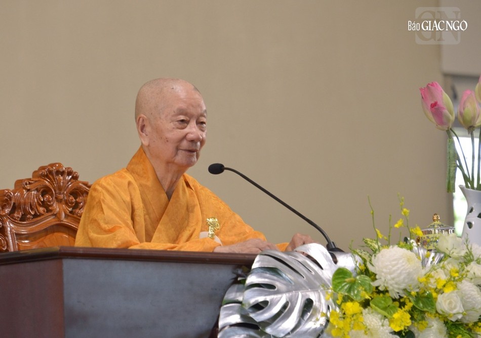 Đức Pháp chủ GHPGVN đồng thời là Viện trưởng Học viện quang lâm khai thị |