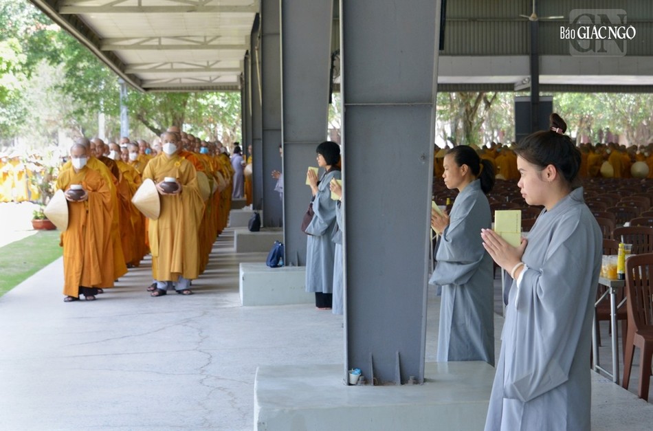 Đức Pháp chủ đã quang lâm quá đường cùng đại chúng tại nơi chánh điện tạm. Phật tử Đạo tràng Pháp Hoa đã đến ngoại hộ, cúng dường chư vị giáo phẩm, Tăng Ni sinh viên hiện diện tu học nội trú.