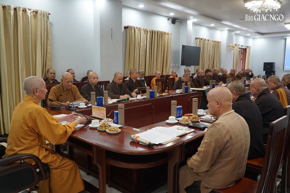 Tại phiên họp, Ban Thư ký đã báo cáo số lượng chư tôn đức tham dự, thời khóa của tuần huân tu; lãnh đạo phòng Sau Đại học trình bày về việc bảo vệ luận văn thạc sĩ và đề cương luận văn thạc sĩ...