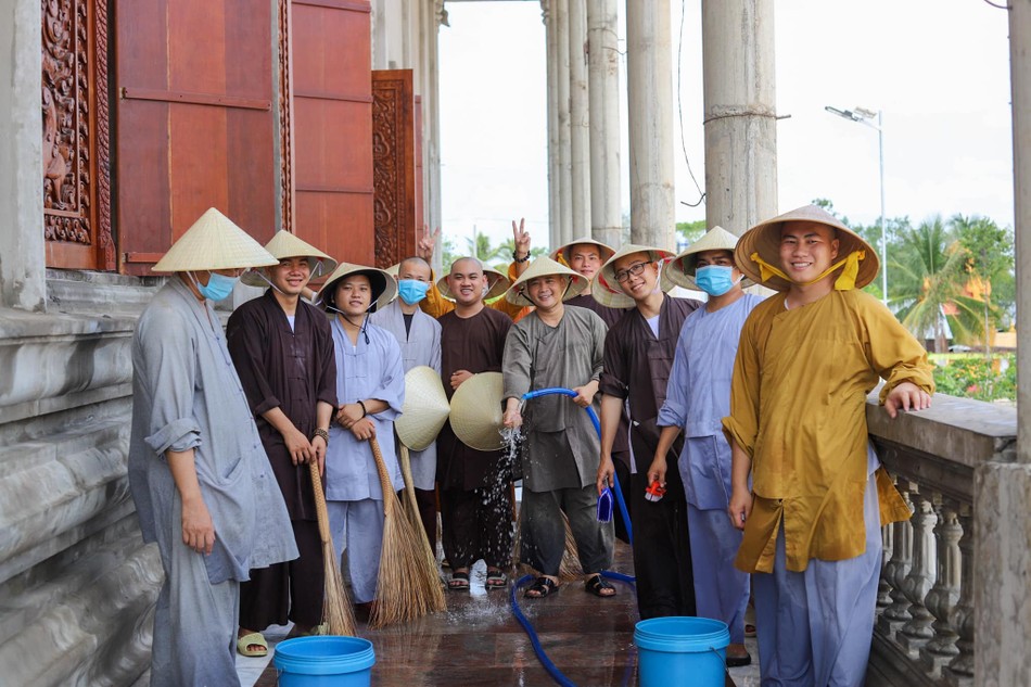 Một số hình ảnh công tác chuẩn bị của chư Tăng các tự viện và tình nguyện viên các tỉnh thành tham gia hỗ trợ cho buổi lễ sáng 24-4:
