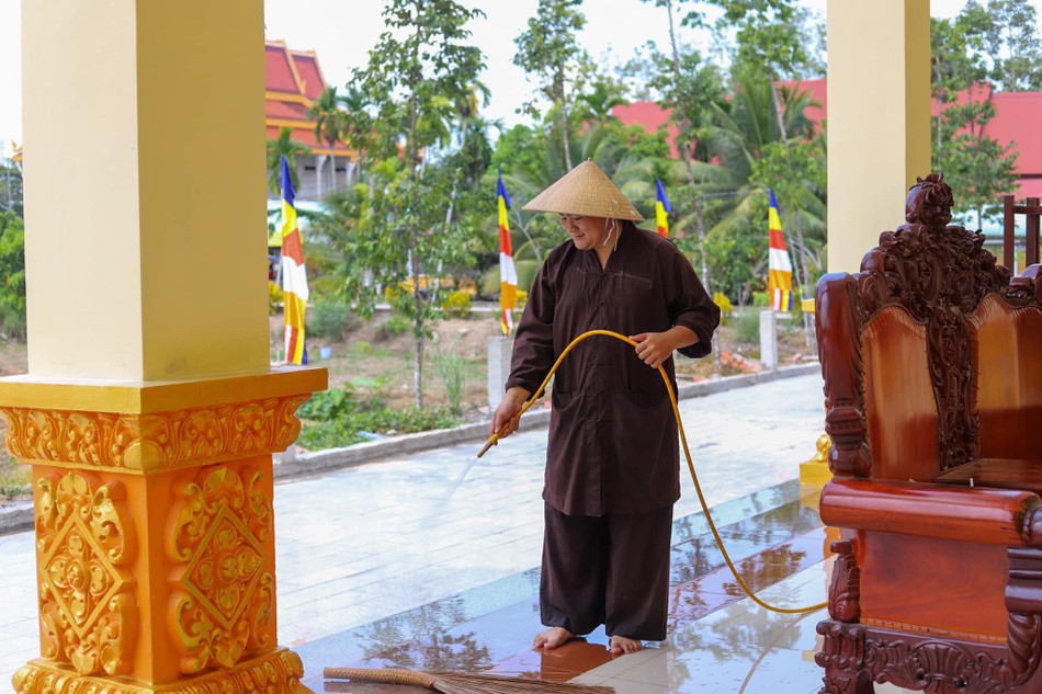 | Hoà thượng Đào Như, Phó Chủ tịch Hội đồng Trị sự, Trưởng Ban Trị sự GHPGVN TP.Cần Thơ, Viện trưởng Học viện Phật giáo Nam tông Khmer tại TP.Cần Thơ kiểm tra công tác thiết trí sáng ngày 24-4 |
