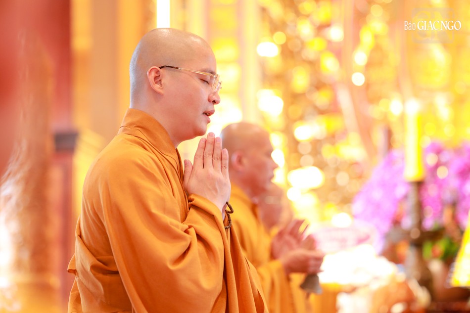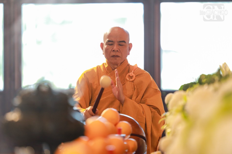 Tại chánh điện Việt Nam Quốc Tự, Hòa thượng Thích Giác Đạo, Ủy viên Hội đồng Trị sự, Phó Trưởng ban Thường trực Ban Nghi lễ T.Ư đương vi sám chủ, cùng chư tôn đức Ban Kinh sư đến từ Cố đô Huế đã cử hành nghi thức Phổ Phật cúng ngọ.