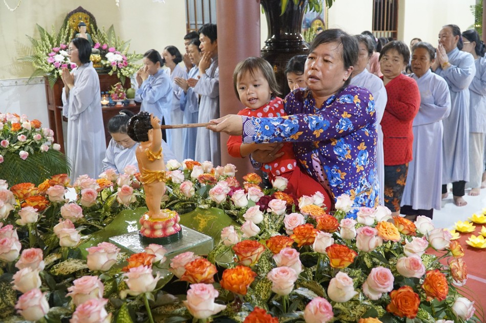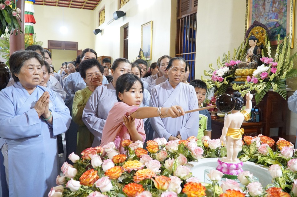Khi cái nắng buổi chiều lắng xuống, âm thanh trống lân vang lên, các em nhỏ trong xóm lũ lượt gọi nhau về chùa, để xem múa lân, để xem Lễ Tắm Phật. Sự có mặt của các em nhỏ làm cho ngày hội thêm đông vui, thêm ý nghĩa.