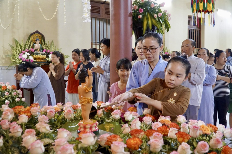 Vui nhất trong ngày này, có lẽ là lũ trẻ trong xóm. Cứ chóc chóc là đội múa lân do các em trong xóm phụ trách cứ chạy vào chánh điện để xem công tác thiết trí đã hoàn tất hết chưa. Bởi, thiết trí xong là các em được múa lân, được biểu diễn cúng dường, chào đón Phật đản.