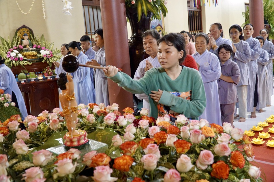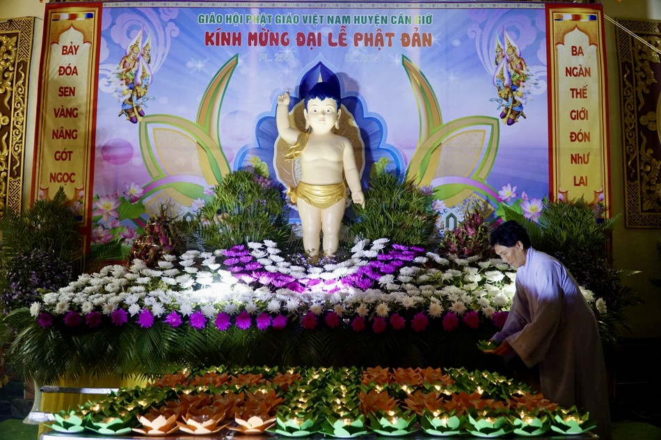 GNO - Tối 11-4-Giáp Thìn (18-5-2024), hơn 400 người dân, Phật tử tại H.Cần Giờ đã tề tựu về chùa Phước Hải (ấp Đồng Hòa, xã Long Hòa) tham gia Lễ Tắm Phật, thắp 3.500 ngọn đèn cúng dường và cầu nguyện bình an trong mùa Phật đản.