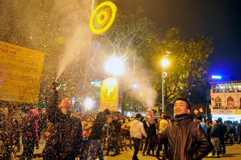 Đêm 29 Tết, hàng chục nghìn người Hà Nội, Sài Gòn đổ về các trung tâm để chờ đợi khoảnh khắc bước sang năm mới Nhâm Thìn. Sau màn trình